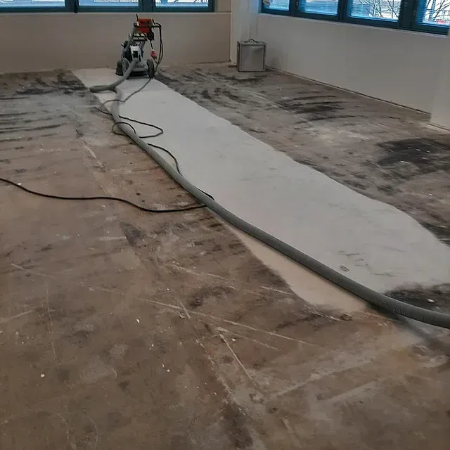 Sisäilmaongelma ja rakenteissa alkanut kosteusvaurio korjataan poistamalla pintamateriaali ja hiomalla liima ja tasoite pois, liimanpoisto käy kätevästi timanttihiomakoneella, jossa on kohdepoisto. Huolehdimme työnaikaisesta pölyn hallinnasta ja alipaineistamme tilan. Hionnan jälkeen suoritetaan tarvittava tuuletus ja rakenteiden kuivaus. Tarvittaessa asennamme uuden lattiapinnan. Vanha puhdistettu betonipinta voidaan myös hioa ja kiillottaa, jolloin saadaan kulutusta kestävä, persoonallinen ja ekologinen lattia.