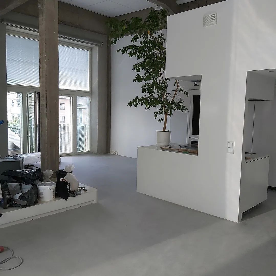 ButtonKiillotettu betonilattia toimistossa
